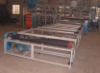 SJ95X2X2200 Carpet plastic extusion compouned machine The specification of this product 1. Main technical parameter (1) Screw diameter 95 mm (2 sets) (2) Screw L/D 24/1 (3) Screw rotary speed 80 r.p.m (4) Screw structure rubber plastic specialized screw (5) Output 220-290 kg/h (6) The power of main drive motor AC frequency conversion speed regulate 45 kw×2 sets (7) Heating power of barrel 35—50KW (12 districts) (8) Cooling way of barrel wind (9) Reduction gear box 450 type high strength hardened gear reducer (2 sets) (10) Die-head Type clothes rack style Effective width 2200 mm Die orifice clearance 1.2 mm Overall length of die body 2400 mm Heating power 21KW (5 districts /7 districts) (11) The power of hdraulic screen changer 3 kw (12) recombination line speed(max) 3 m/min (13) Drive motor power of composite roll AC frequency conversion speed regulate 4 kw (14) Composite smooth roll spec 400X2200 (15) The power of take-up drive motor 3 kw (16) Take-up roll spec 100X2200 (17) Total power 180 kw (18) Machine dimension(m) 8X12X3.5 2. The usage This machine mainly used in the composite extrusion of chemical fibber carpet, mat of rubber base and fabric, suitable particle material plastication, extrusion and compound. This characteristics of the machine are continuity production, high production efficiency, the even thickness of the composite bottom material, and fabrics with solid combination, so it has good economic benefit in the client for its stonger competitiveness. 3. organization structure This machine is made up of rubber extruder, move base, hydraulic rapid screen changer, clothes rack style die-head, compound device, drawing device, furling device and electric control system, etc. Process: raw material enters the extruder barrel from the hopper, heat melt and plasticizing in the extruder screw barrel, then pass the rapid sceen changer and the die-head, formed into sheet and chemical fiber composite, to become high value-added composite carpets. (1) Extrusion device Barrel and screw are the key components, the material are moved stirried, compressed, plastified here. So the barrels and screws of our company are all adopted high hardness and corrosion resistance of nitriding steel(38CrMoALA), barrel use hot-gas and air to cooling to achieve each district thermo regulation and thermo control. (2) The reducer uses high-accuracy hardened reducer, its advantages are high bearing capacity and good transmission balance. (3) Extruder is installed on the move-rack, it is easy to enter or exit compound device. (4) Die-head adopts clothes rack style die-head, the die orifice clearance of die-head is adjustable, and the thickness of sheets extruded are even. (5) Adopts hydraulic rapid screen changer.